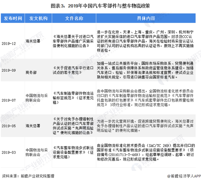 在汽車零部件和整車物流政策方面,國家在進(jìn)出口方面減少抽檢程序,一定程度有利于汽車零部件進(jìn)口,促進(jìn)汽車零部件物流發(fā)展。對于汽車物流規(guī)范,《汽車整車物流多式聯(lián)運(yùn)設(shè)施設(shè)備配置要求》(征求意見稿),《汽車制造零部件物流運(yùn)輸標(biāo)簽規(guī)范》(征求意見稿)相繼出臺,推動汽車物流行業(yè)規(guī)范發(fā)展。